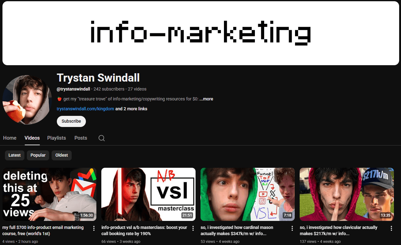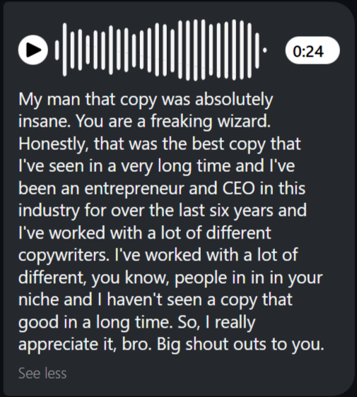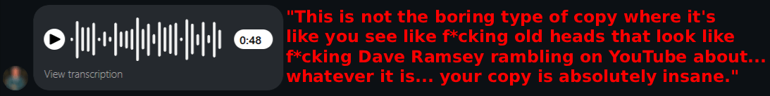 He’s written copy for multi-7 & multi-8 figure info-businesses, beats control funnels like child’s play, spanks sales records for 3,000,000+ follower influencers…