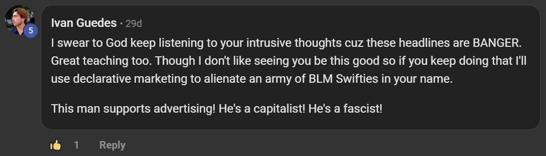 And although the people that make that critique usually couldn't tell you the first thing about direct response, it is a fair point.